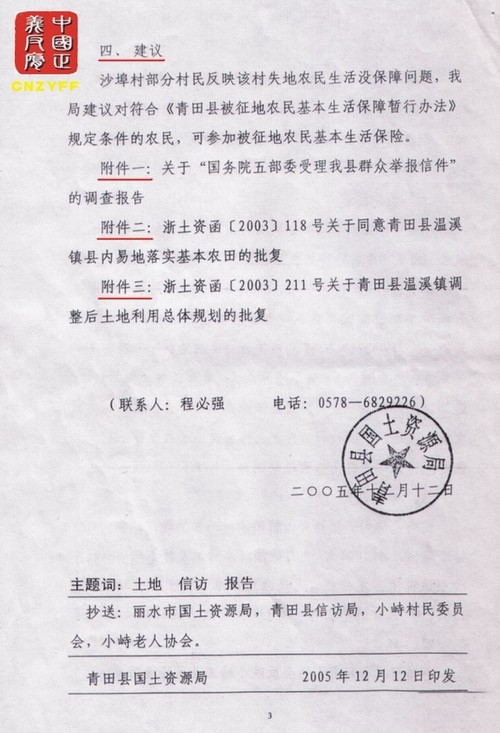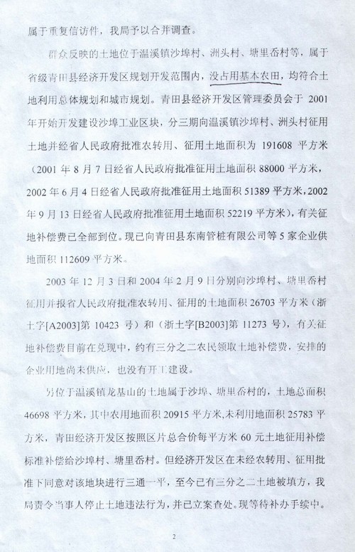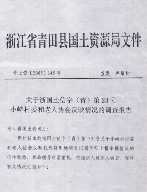 2004年8月27日,“国务院五部委受理青田县群众举报信件”调查报告