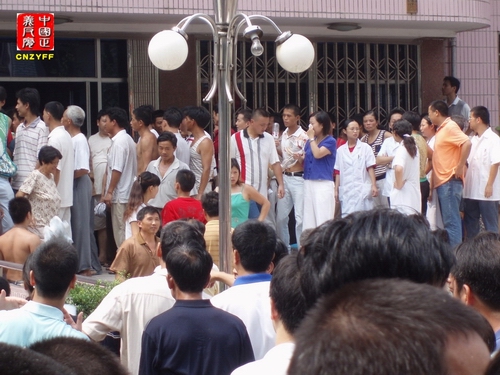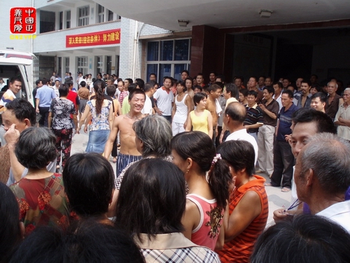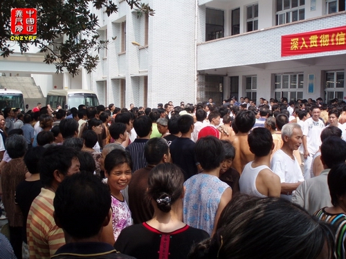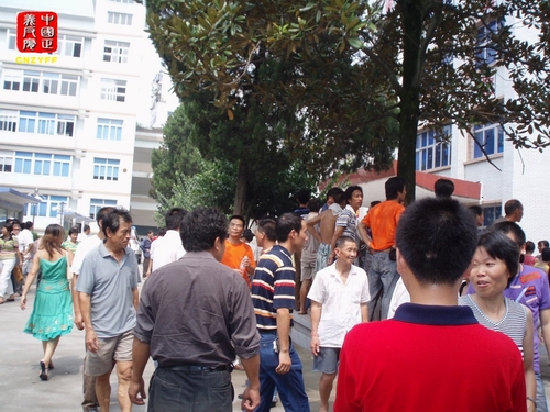 ▲图为青田县各镇、乡、村上万人上访人集中在鹤中校园里大热天气中等待上访
