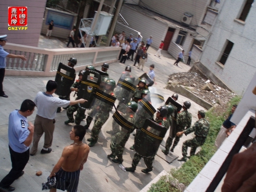▲图为县政府调来武警人员镇压上访人