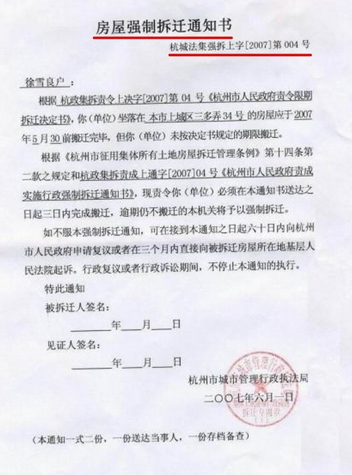 浙江:杭州“官商”勾结强制拆迁 人民警察成了腐败分子保护“伞”拆迁“敢死队”
