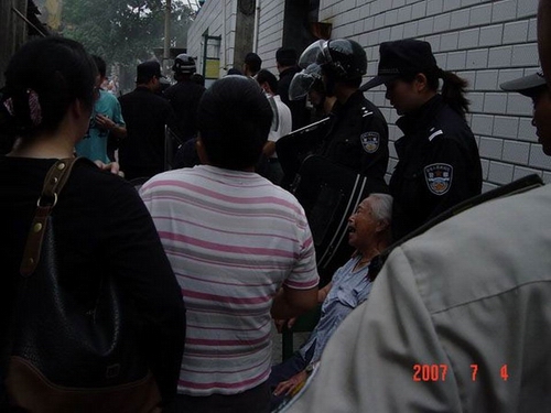 另据了解,今天的拆迁,有十二位居民被抓,比上午报的人数增加了六名。这些人现在分别被关押在杭州市湖滨派出所、江城路特警支队、望江东院特警队、杭州艮山门(派出所)。这些被抓的居民都是当时在拆迁现场围观的群众,他们被抓的理由仅仅是在围观时“骂了土匪”、“骂了强盗”。