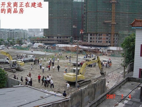 图为“官商”勾结“敢死队”保护下开发商清理地上杂物在建造商品房
