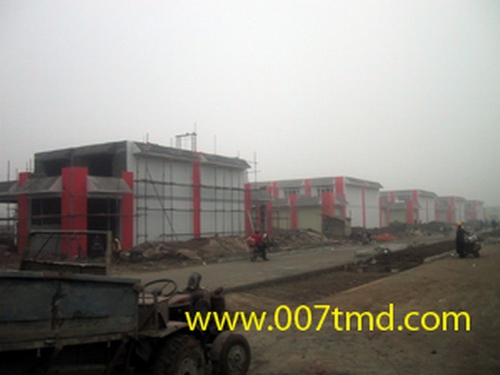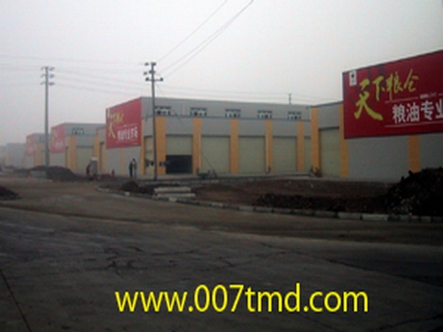 果然在青龙经济开发区的一隅原青龙镇莲池村的旁边看到了一期工程占地50亩(总规划为201亩)的“天下粮仓”粮油市场。该市场不是完全意思上的市场,而是一栋栋连体或独立别墅。一楼做门市,二楼或三楼则可以住家。而且这些别墅的式样很是新颖,很显然是经过专业设计的。