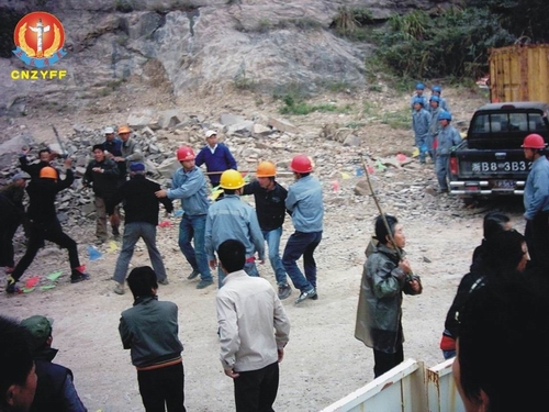 图为中在10·28事件宁波市象山县腐败官员勾结地痞流氓殴打村民现场