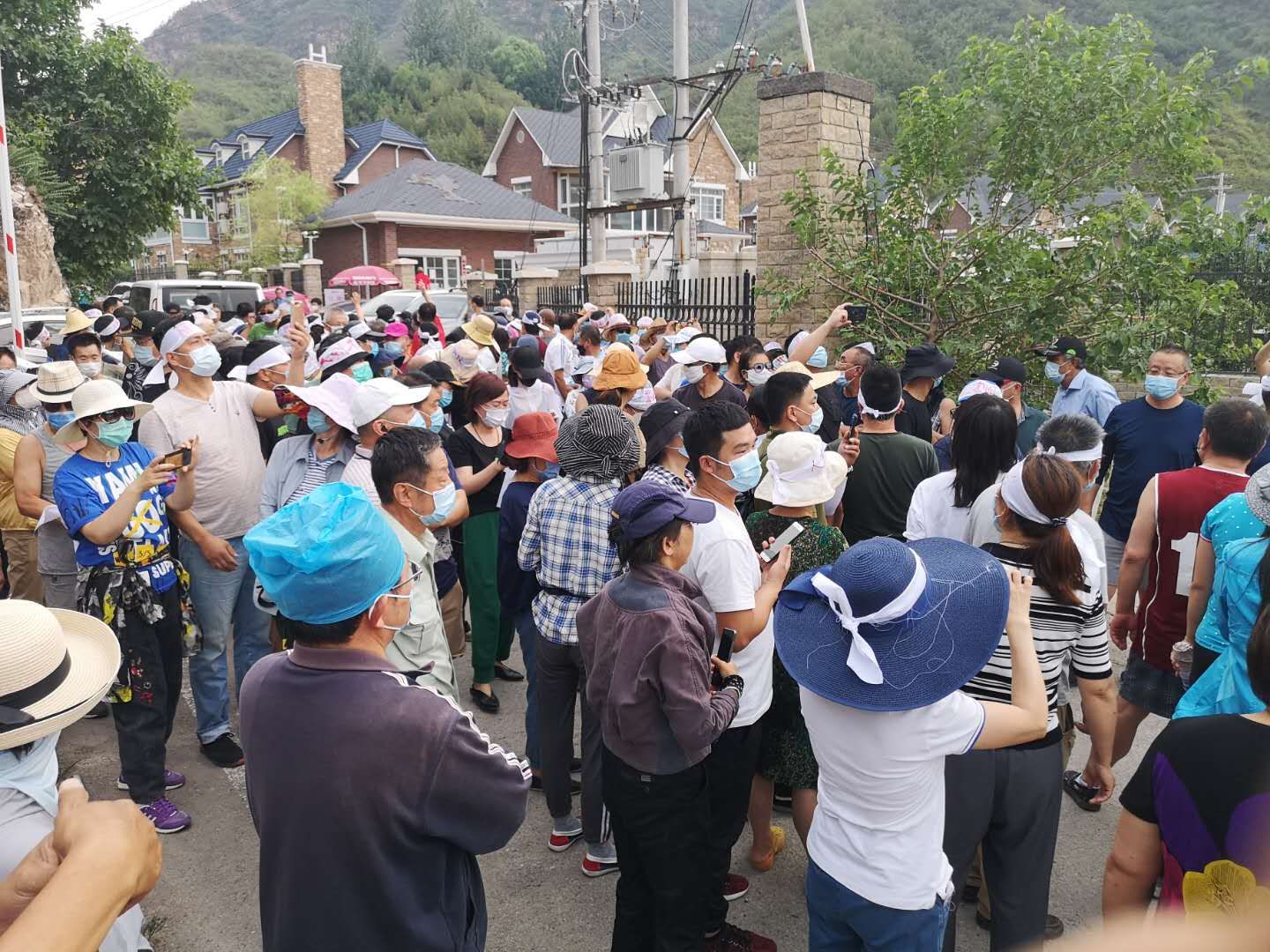 特别是在北京疫情严峻时,聚众强拆,居民头绑白布条集体抗议,引发民众愤怒。(知情人提供)